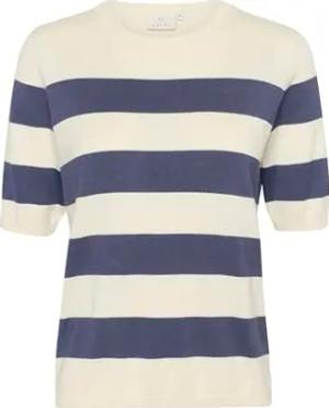 Strickpullover KAlizza Damen Strickpullover Kurzarm Streifen Lässig Casual Rundhals Pullover Gestreift Indigo Blue/White Bold Stripe S