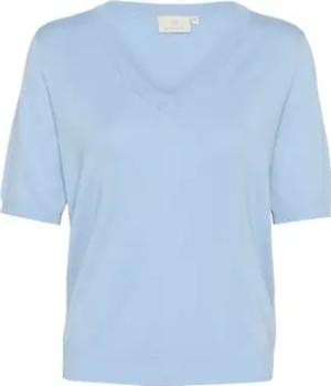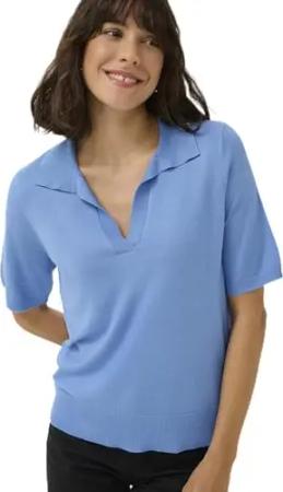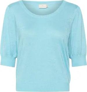 KAmalene Knit Pullover Damen Strickpullover Kurzarm Rundhals Pullover Knit Pulli Herbst Winter Einfarbig Oberteile Malibu Blue Melange XS