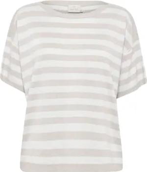 Strickpullover KAlizza Damen Strickpullover Kurzarm Streifen Lässig Casual Rundhals Pullover Gestreift Chalk/GreyMel. Bold Stripe XS