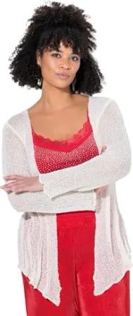 Damen große Größen Übergrößen Plus Size Jacke, elastischer Slim Fit, Löcher, Wellenkanten Offwhite 54+ 840092200-54+