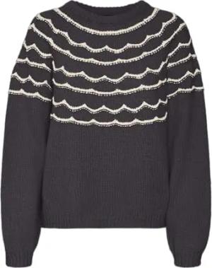 Damen Vmcharmaine Ls O-Neck Pullover Ga Boo Strickpullover, Obsidian/Detail:W. Birch, M