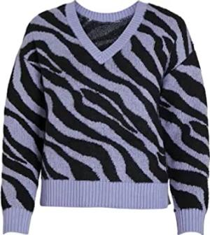 Damen Viril Feami Mix V-neck L/S Knit Top Noos Pullover, Pale Iris/Pattern:with Black,M