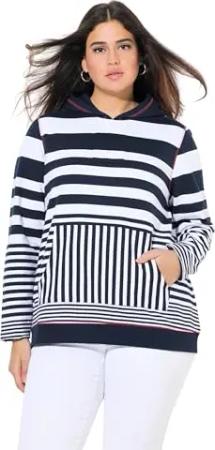 Damen große Größen Übergrößen Plus Size Hoodie, gestreift mit Känguru-Tasche