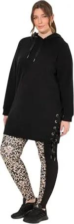 Damen große Größen Übergrößen Plus Size Long-Hoodie, Satinbänder, Kapuze, Langarm schwarz 50+ 832306100-50+