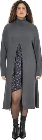 Damen große Größen Übergrößen Plus Size Long-Pullover, A-Linie, Stehkragen, Langarm Graphitgrau 58+ 821607110-58+