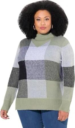 Damen große Größen Übergrößen Plus Size Pullover, Karomuster, Stehkragen, Langarm