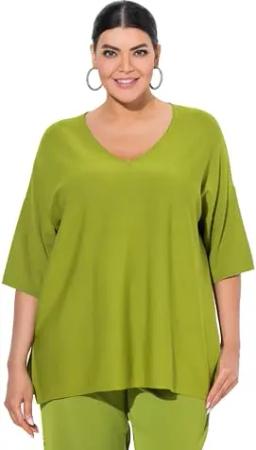 Damen große Größen Übergrößen Plus Size Pullover, Oversized, V-Ausschnitt, Halbarm grasgrün 50+ 817342420-50+