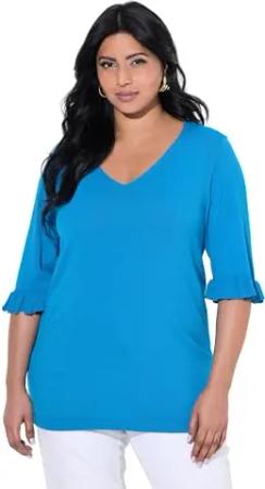 Damen große Größen Übergrößen Plus Size Pullover, Oversized, V-Ausschnitt, Halbarm