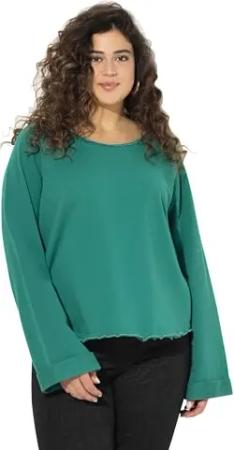 Damen große Größen Übergrößen Plus Size Sweatshirt, Rollkanten, Rundhals, Raglan-Langarm smaragd grün 54+ 830575469-54+