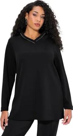 Damen große Größen Übergrößen Plus Size Sweatshirt, Stehkragen, Classic, Zierkette, Langarm