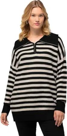 Damen große Größen Übergrößen Plus Size Troyer, Ringel, Oversized, Reißverschluss, Langarm schwarz 46+ 825060100-46+