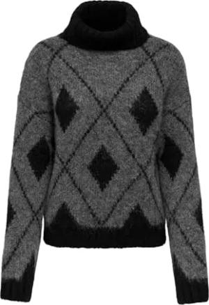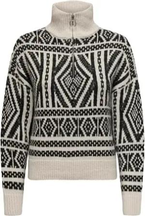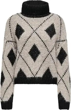 JDY Damen Rollkragen-Strickpullover JDYZoey Life Pulli mit Jaquard-Muster 15330718 Chateau Gray/Black Jaquard XL