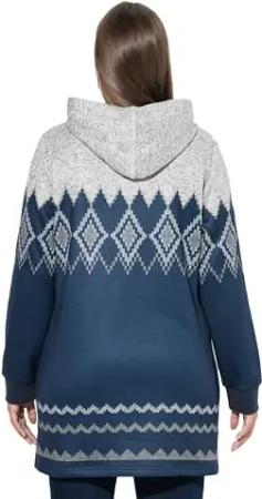 Norweger-Strick-Fleece-Longpullover, Kapuze Navyblau 44+ 842479124-44+