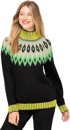 JDY Damen Rollkragen-Strickpullover JDYZoey Life Pulli mit Jaquard-Muster 15330718 Black/DGMJaquard XL