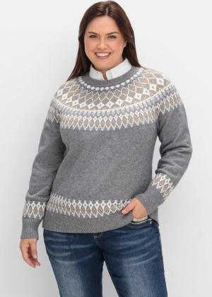 Große Größen: Jacquardpullover mit Norwegermuster, grau meliert, Gr.40/42-56/58