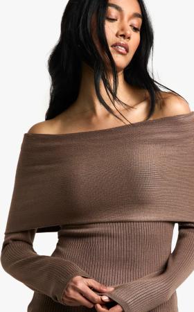 Gerippter Premium Bardot-Pullover - Mushroom - S, Mushroom