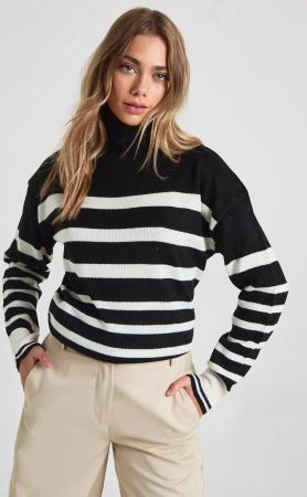 Gestreifter Rollkragen-Pullover Mit Weiten Ärmeln - Black - S, Black