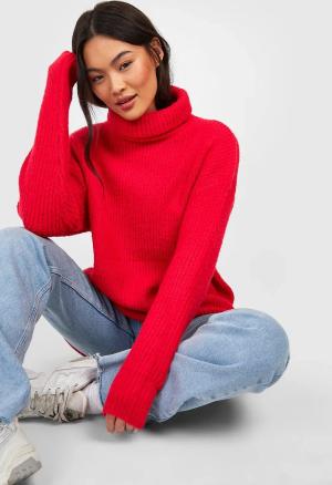 Oversize Rollkragen-Strickpullover - Red - L, Red