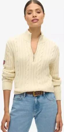 Superdry Damen Rugby-strickpullover mit Halblangem Reißverschluss Creme - Größe: 36