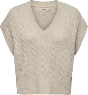 Damen Pullunder Strickpullunder ONLMELODY XS S M L XL Beige Braun V-Neck, Größe:M, Farbe:Oatmeal Melange 15249328
