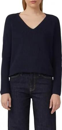 Gerippter Strickpullover aus Baumwollmix mit V-Ausschnitt