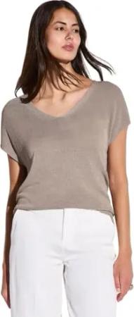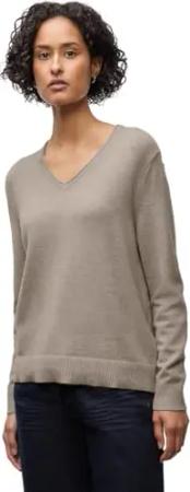 V-Neck Strukturpullover Sandstone Mocha Mel. 44