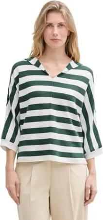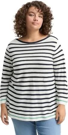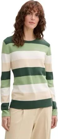 Damen 1047129 Pullover, 37829-Offwhite Green Navy Stripe, 46
