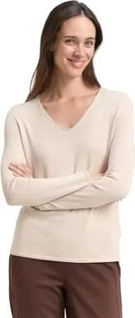Damen Basic Strickpullover mit V-Ausschnitt, 20737 - Desert Sand Melange, L