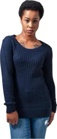 Damen Ladies Knitted Roundneck Sweater Navy, XL