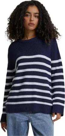 Damen Sweater Ladies Rib Striped Sweater, lässiger Strickpullover für Frauen, gestreift, Loose Fit