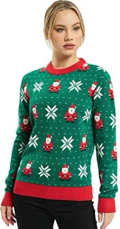 Damen Pullover Ladies Santa Christmas grün XL