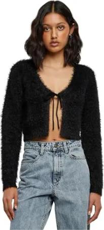 Damen Strickjacke Ladies Tied Cropped Feather Cardigan Black 4XL