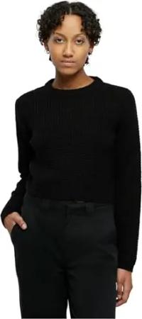 Damen Sweatshirt Ladies Short Waffle Sweater Black XS