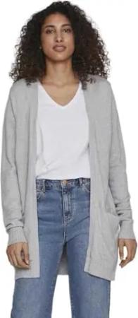 Damen Viril Open L/S Knit Cardigan - Noos Strickjacke, Medium Grey Melange, XS EU