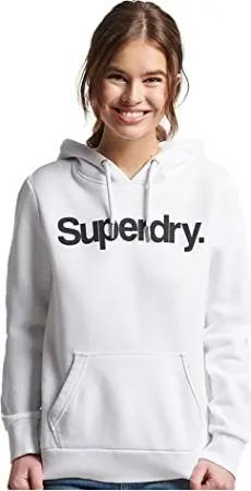 Damen Core Logo Hoodie, lockere Passform, Kapuze mit Kordelzug, Weiß glänzend, 34