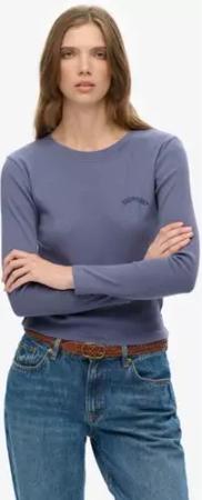 Superdry Damen Athletic Essentials Logo Kleidungsstück Gefärbt Geripptes Oberteil Navy - Größe: 44