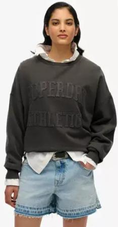 Superdry Damen Athletic Essentials Rundhals-sweatshirt mit Abgestimmten Applikationen Dunkelgrau - Größe: 42