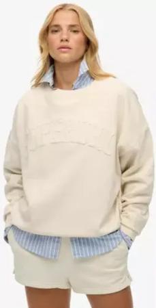 Superdry Damen Baumwolle Athletic Essentials Rundhals-Sweatshirt mit Abgestimmten Applikationen, Creme - Größe: 36