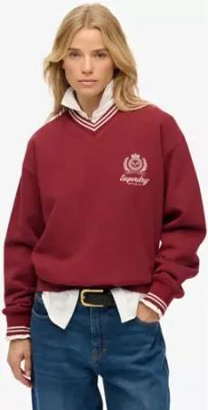 Superdry Damen Country Club Sweatshirt mit V-ausschnitt Red - Größe: 42