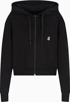 Damen Sweatshirt mit Reißverschluss French Terry Badge Logo aus Baumwolle, Schwarz (Black), S
