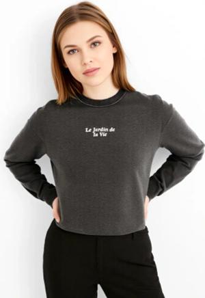 Female Sweatshirt Normal geschnitten Rundhals Gerippte Ärmelbündchen Tief angesetzte Schulter Sweatshirt