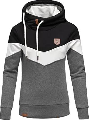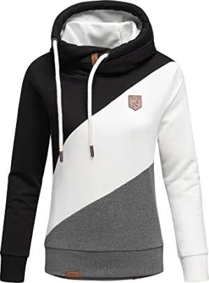 Damen Kapuzenpullover Sweatjacke Pullover Hoodie Sweatshirt RD-008 Schwarz/Weiß/Anthrazit XS
