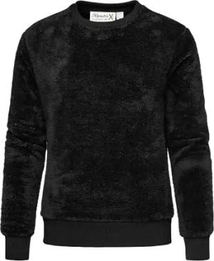 Damen Sweatshirt Teddy Pulli Sweatjacke Plüsch Hoodie Pullover RD-021 Schwarz XS