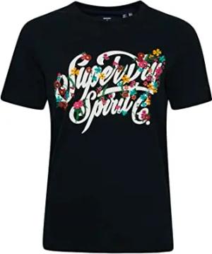 Damen Script Style FLORAL Tee T-Shirt, Eclipse Navy, XXS