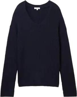 Damen RIPP Strickpullover mit V-Ausschnitt, 35896 - Preppy Jean Blue Melange, XXS