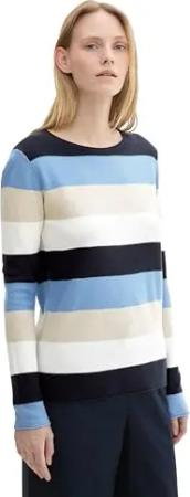 Damen Basic Strickpullover aus Bio-Baumwolle, 36208 - Colorful Knit Stripe Design, S