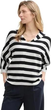 Damen 1046433 Top, 38305-Black Off White Stripe, L