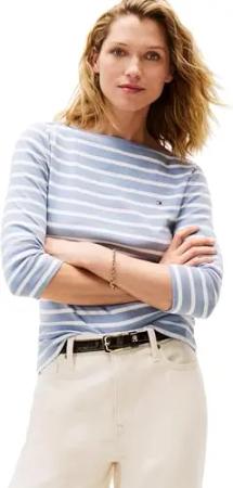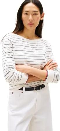Damen Langarmshirt New Cody Slim U-Boot-Ausschnitt, Mehrfarbig (Nos Breton Desert Sky/Ecru), XXS