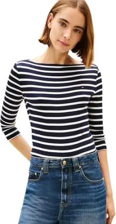 Damen Langarmshirt New Cody Slim U-Boot-Ausschnitt, Mehrfarbig (Breton/ECU/Dark Night Navy), XXS