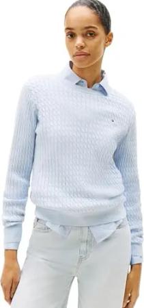 Damen Pullover Cable Fine Zopfstrick, Blau (Breezy Blue), XXS